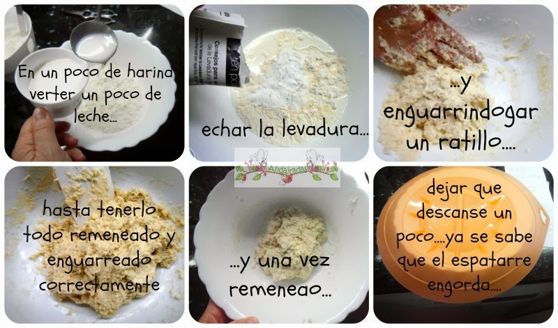 Ya le había echado el ojo a otra receta que me pareció sin complicaciones, el blog Recetas de cocina....ahí no decía nada de levadura fresca....así que me lié de nuevo....lo hice con la mitad de los ingredientes...si la jodía, por lo menos que la fastidiara la mitad ☻☻☻