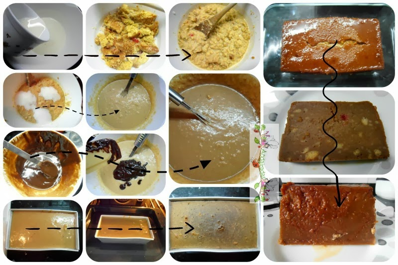 E hice la receta de Brujilda...Pudin de Chocolate...y en lugar de echarle el pan....le endosé todo el bizcocho ese, desmenuzado.....y como chocolate le eché el que me había sobrado del otro (y que había mantenido en la nevera.....)